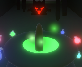 Arrow keys to create the different brew to defeat corresponding shadows from the recipe book.